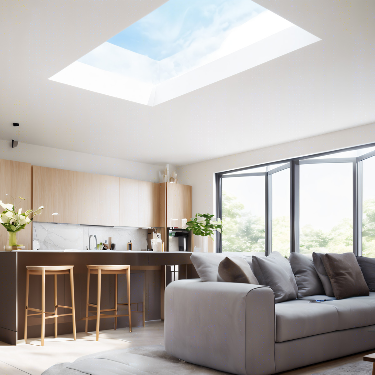 Flat rooflights are a popular choice for living rooms, kitchens, and extensions, helping to create an inviting and energy-efficient environment.
